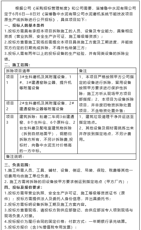 【招標(biāo)公告】魯中水泥