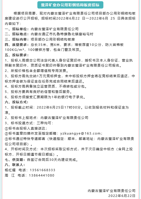 【招標(biāo)公告】魯中水泥煙煤招標(biāo)、螢澤礦業(yè)辦公用彩鋼結(jié)構(gòu)板房、項(xiàng)目建設(shè)監(jiān)理招標(biāo)