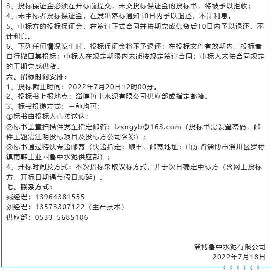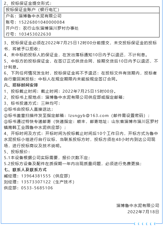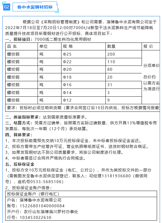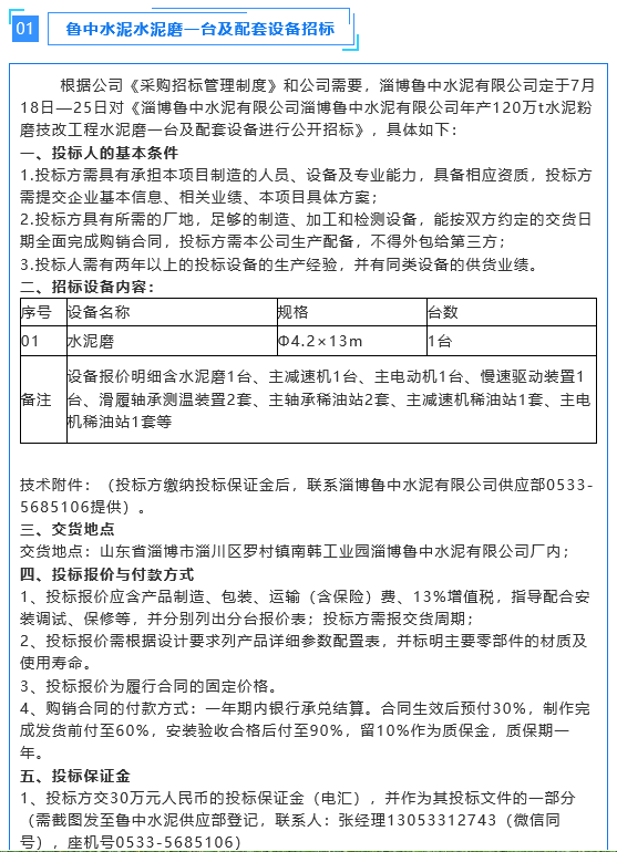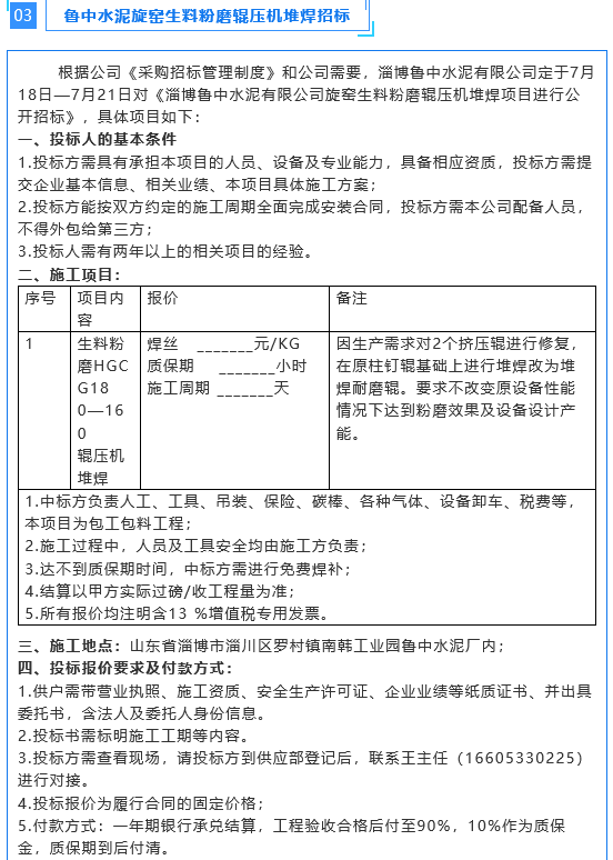【招標(biāo)公告】魯中水泥水泥磨一臺(tái)及配套設(shè)備、鋼材、旋窯生料粉磨輥壓機(jī)堆焊招標(biāo)