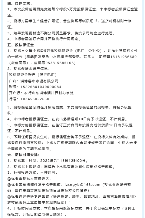 【招標(biāo)公告】魯中水泥