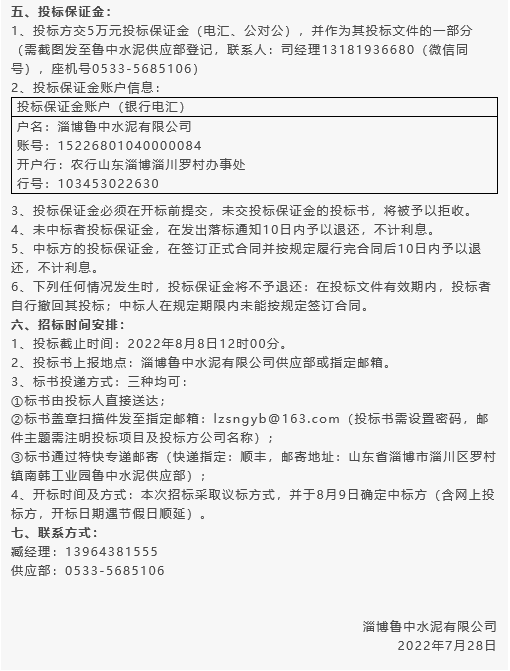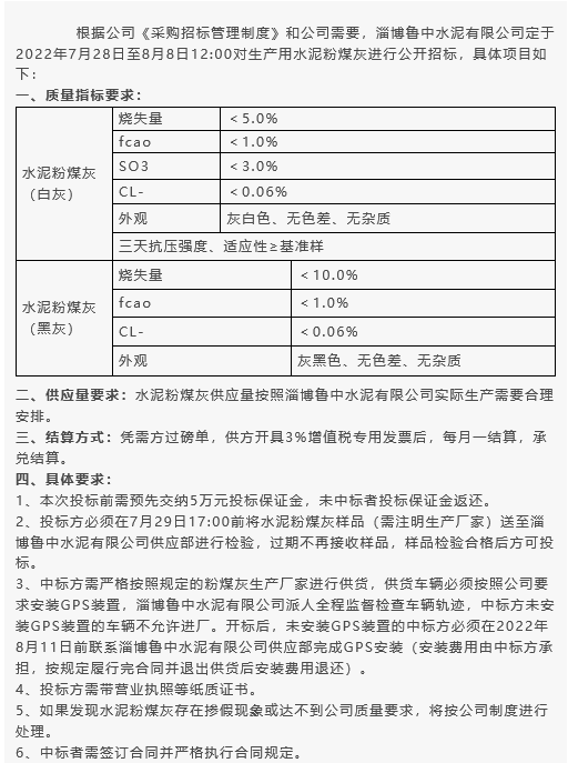 【招標公告】魯中水泥