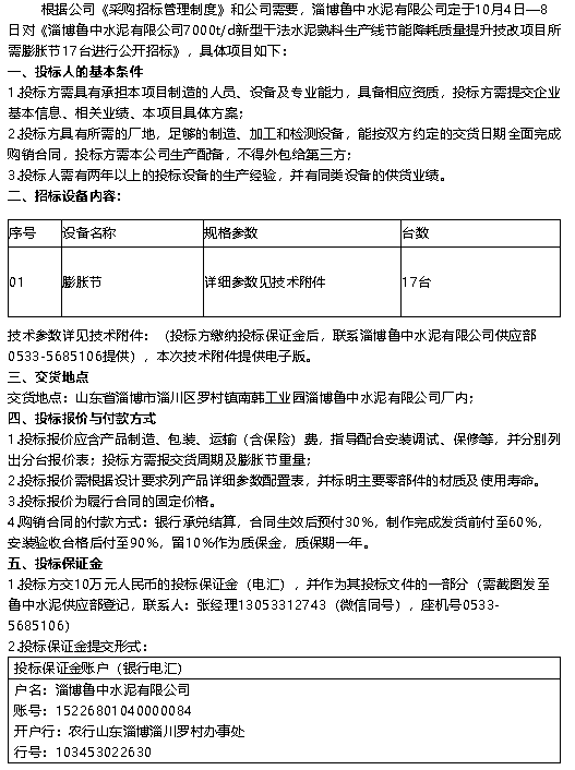 【招標(biāo)公告】魯中水泥