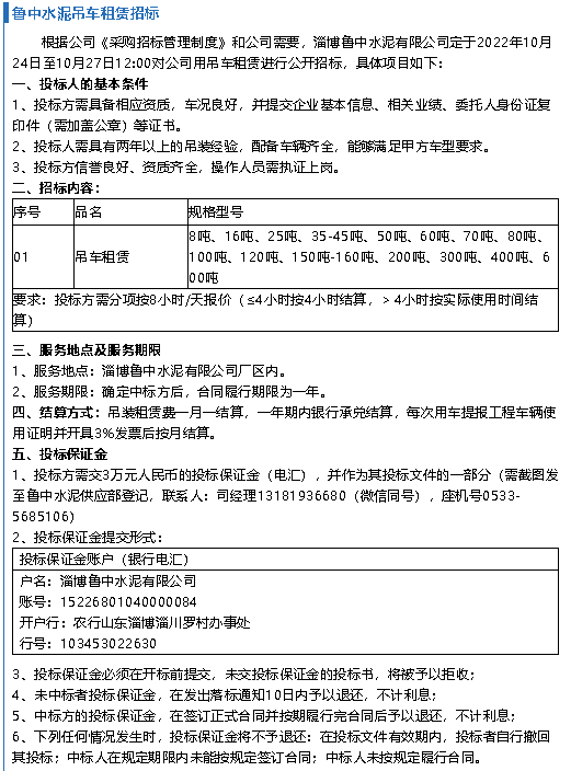 【招標(biāo)公告】魯中水泥、鵬峰化工