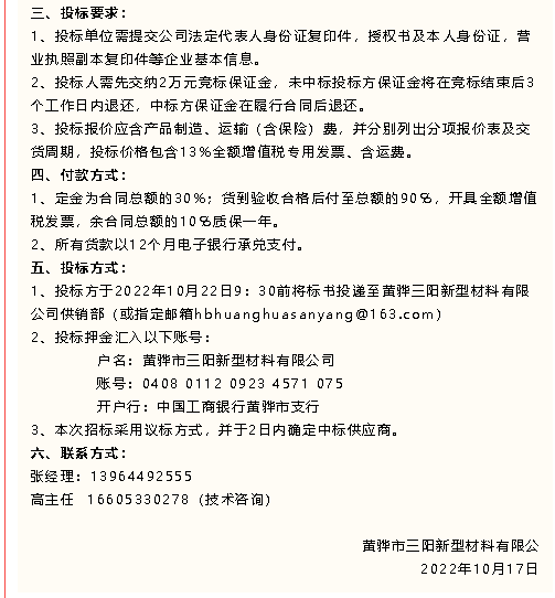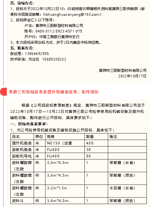 【招標(biāo)公告】黃驊三陽、魯中水泥