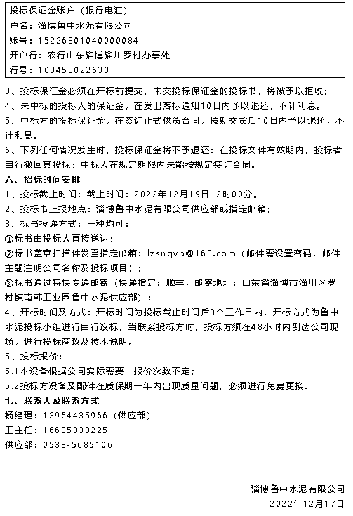 【招標公告】魯中水泥鐵礦粉、電纜線招標