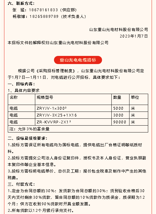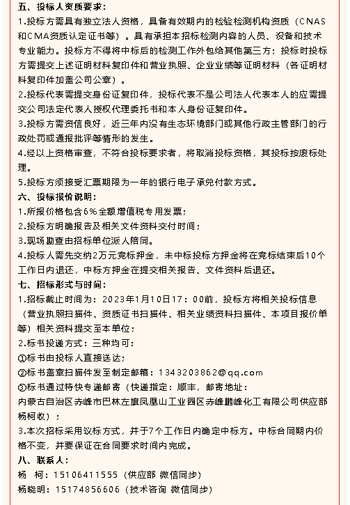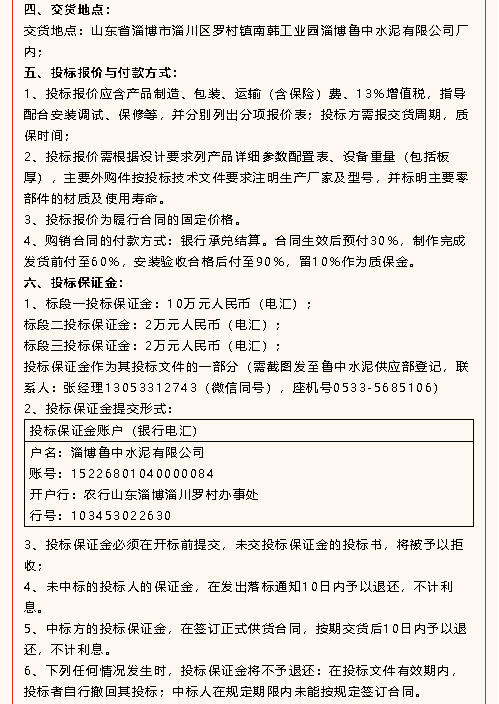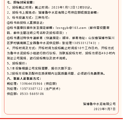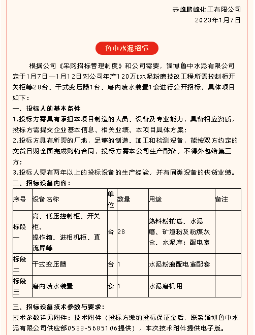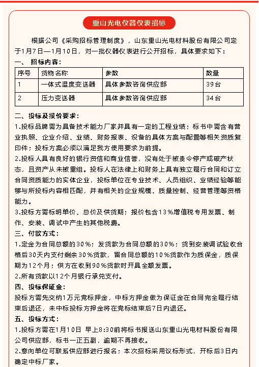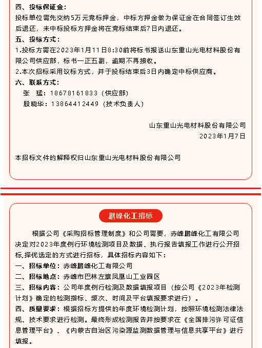 【招標公告】重山光電、鵬峰化工、魯中水泥