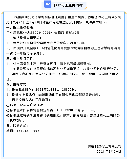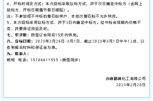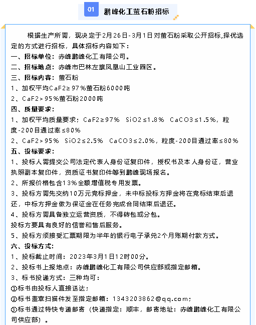 【招標(biāo)公告】鵬峰化工螢石粉、液堿招標(biāo)