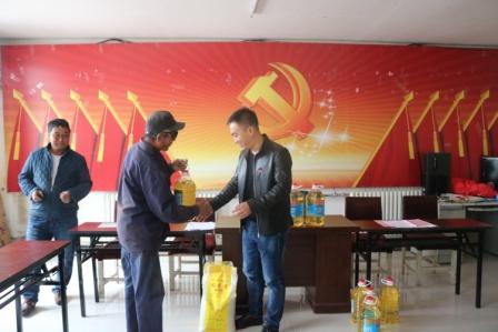 在慰問現(xiàn)場,魯蒙黨支部書記周海與要爾亞村書記鐘畢力格及老人們進(jìn)行了親切的交談,周總說到:“要爾亞村作為魯蒙公司的毗鄰村居,在多年來的發(fā)展中我們和諧相處,共同發(fā)展,保持著良好的鄰里關(guān)系,在中秋佳節(jié)來臨之際祝大家身體健康、萬事如意,并希望在今后的發(fā)展中和大家魚水相融,一路前行?!辩姰吜Ω駮浘o緊的握住周總的手表達(dá)了對魯蒙公司的感激之情。隨后周總為老人們發(fā)放了節(jié)日慰問品,老人們手里提著沉甸甸的禮品,臉上掛滿了笑容,現(xiàn)場氣氛一派和諧。